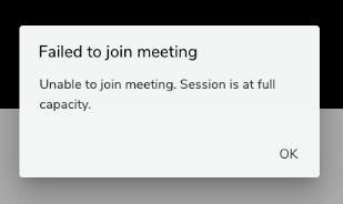 If you you have set a maximum capacity for the breakout rooms, any attendees which try entering a full room will find the following notification:
