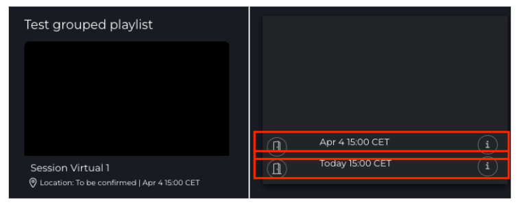 • Add group session with the same title – when enabled, this combines sessions with the same name into the same session tile and will allow users to choose between the different session times.