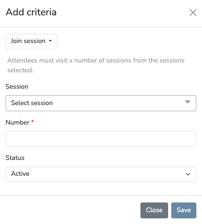 - Join Session – Attendees must visit x number of sessions from the sessions selected.