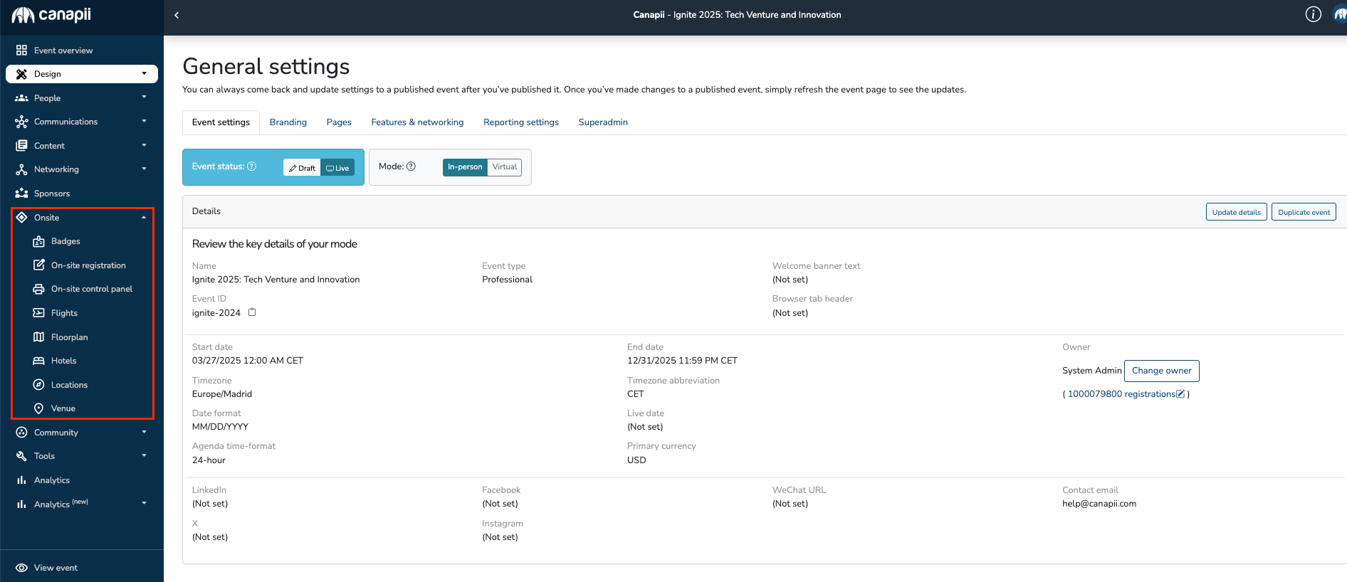 Changing the Event mode: In-person or Virtual