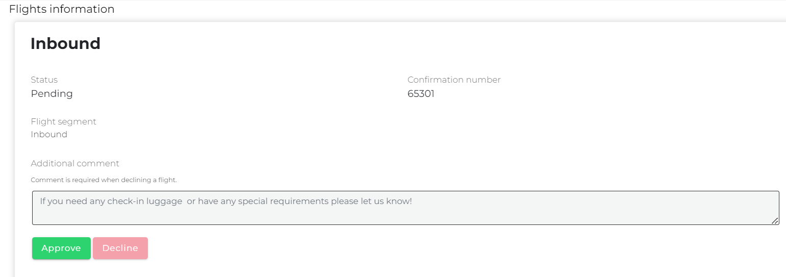 When declining a flight, an attendee is required to leave a comment. The admin will then receive a notification that includes the comment or reason why the flight was declined.