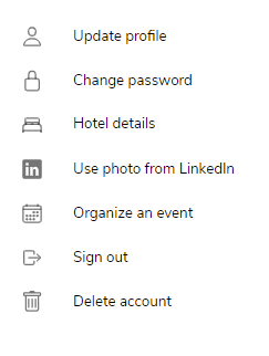 When “Ability to update bookings on platform” is enabled rom the event users can update this information by selecting the icon which features their initials (in the right hand corner of the screen).