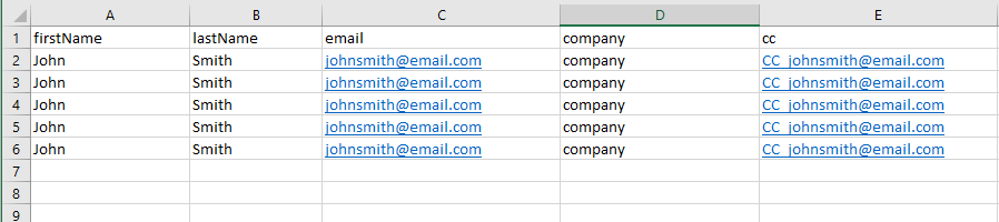 First_name | Last_name | Email | company (optional) | cc (optional)