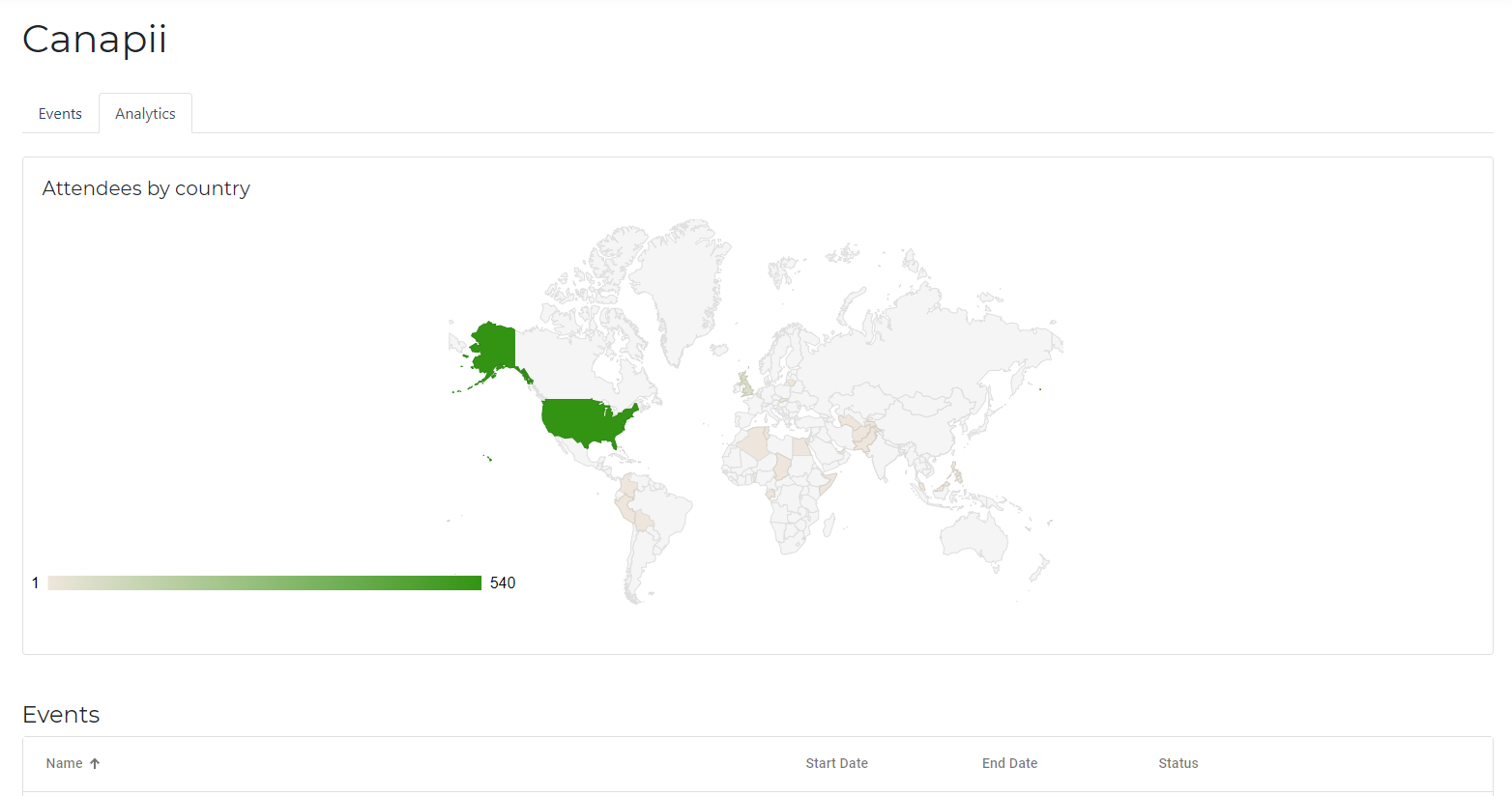 • Attendees by country (heat map diagram)