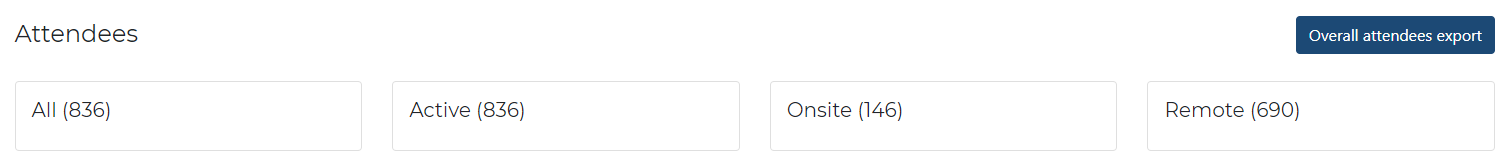 The blue Overall attendees export button will appear in the upper right corner, and also beside the Attendees table: