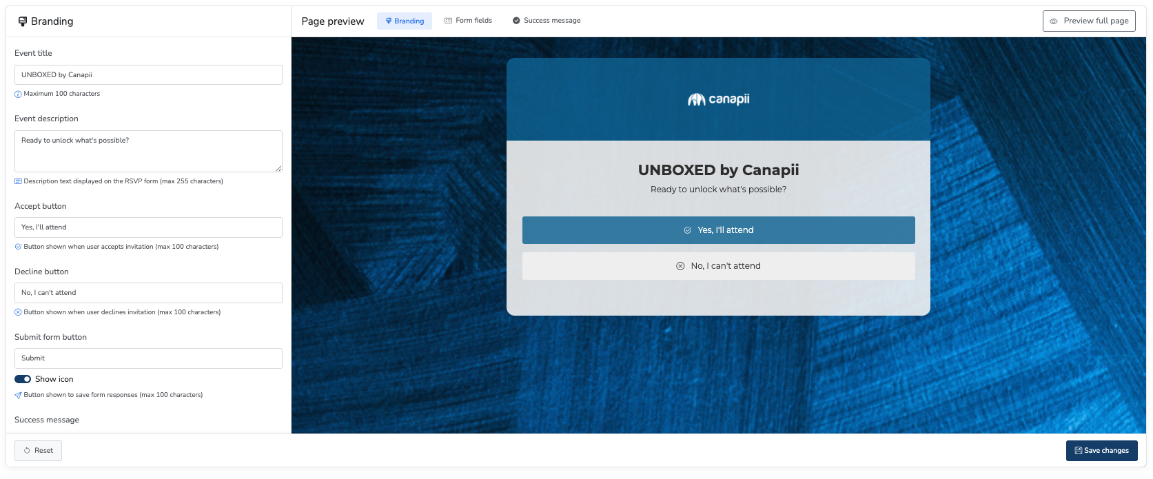 Make the RSVP page feel like your event by customizing the following: