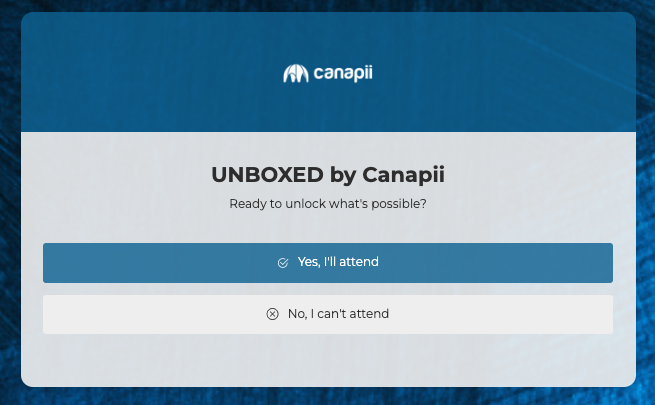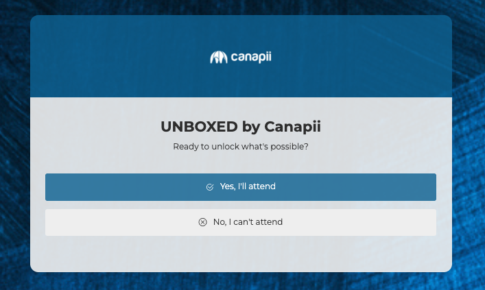 If an attendee clicks either “Yes” or “No,” they are routed to the next page, which collects their information based on the settings from the form fields.