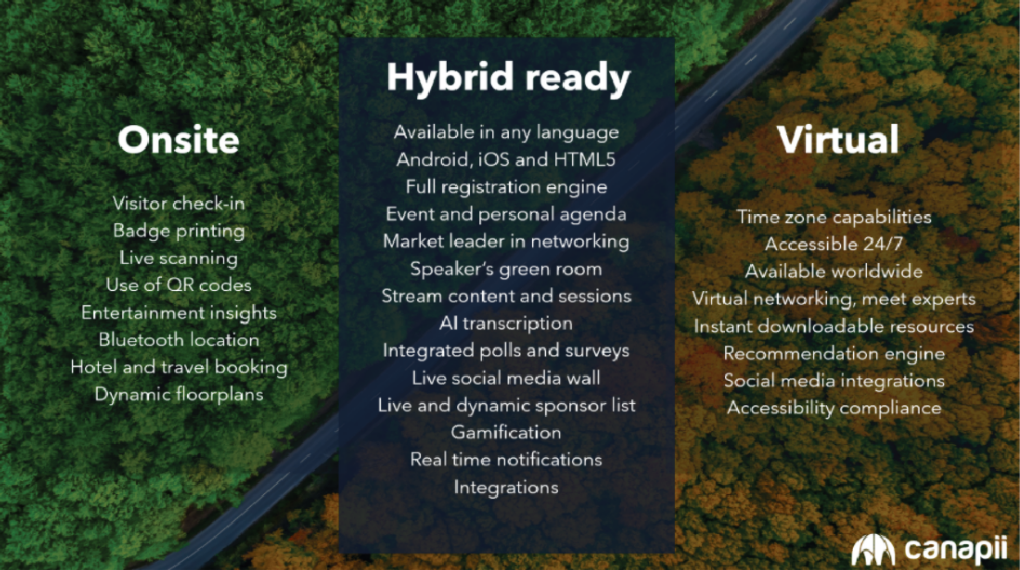 This article details what our customers can expect from a hybrid approach to their events. Detailed below are a few of the powerful event management tools that Canapii has to offer and which we hope will get you as excited about hybrid as we are!